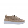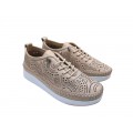 ZAPATO PLANO DE PIEL CON CALADOS MANLISA EN COLOR BEIGE 5113
