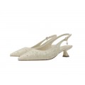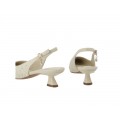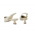 El tacón geométrico de 4,5 cm ofrece la altura ideal para el día a día, proporcionando estabilidad y comodidad. La punta fina con escote redondeado realza la silueta del pie, mientras que la tira trasera con hebilla metálica permite un ajuste seguro y personalizado.