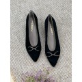 Elegante zapato corte salón de la marca Hobby modelo 403 en color negro para mujer. Su diseño de punta afilada y su fabricación en ante le aportan un estilo único perfecto para llevar en aquellas ocasiones en las que quieres ir arreglada.