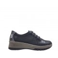 Corte realizado en piel natural que se adapta muy bien al pie,forro interior textil con plantilla de piel extraíble, cierre mediante cordones elásticos y suela sintética muy flexible y adherente.