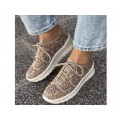 Zapato sport Plumaflex para mujer en color Taupe es la opción ideal para quienes buscan comodidad, estilo y frescura en los días calurosos. Su diseño troquelado favorece la transpirabilidad, manteniendo tus pies fresquitos en todo momento.