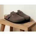 Corte realizado en piel velour de primera calidad con detalle de hebilla ajustable, dispone de plantilla anatómica realizada en corcho natural y foam, suela Eva muy adherente y flexible. Hecho en España.
